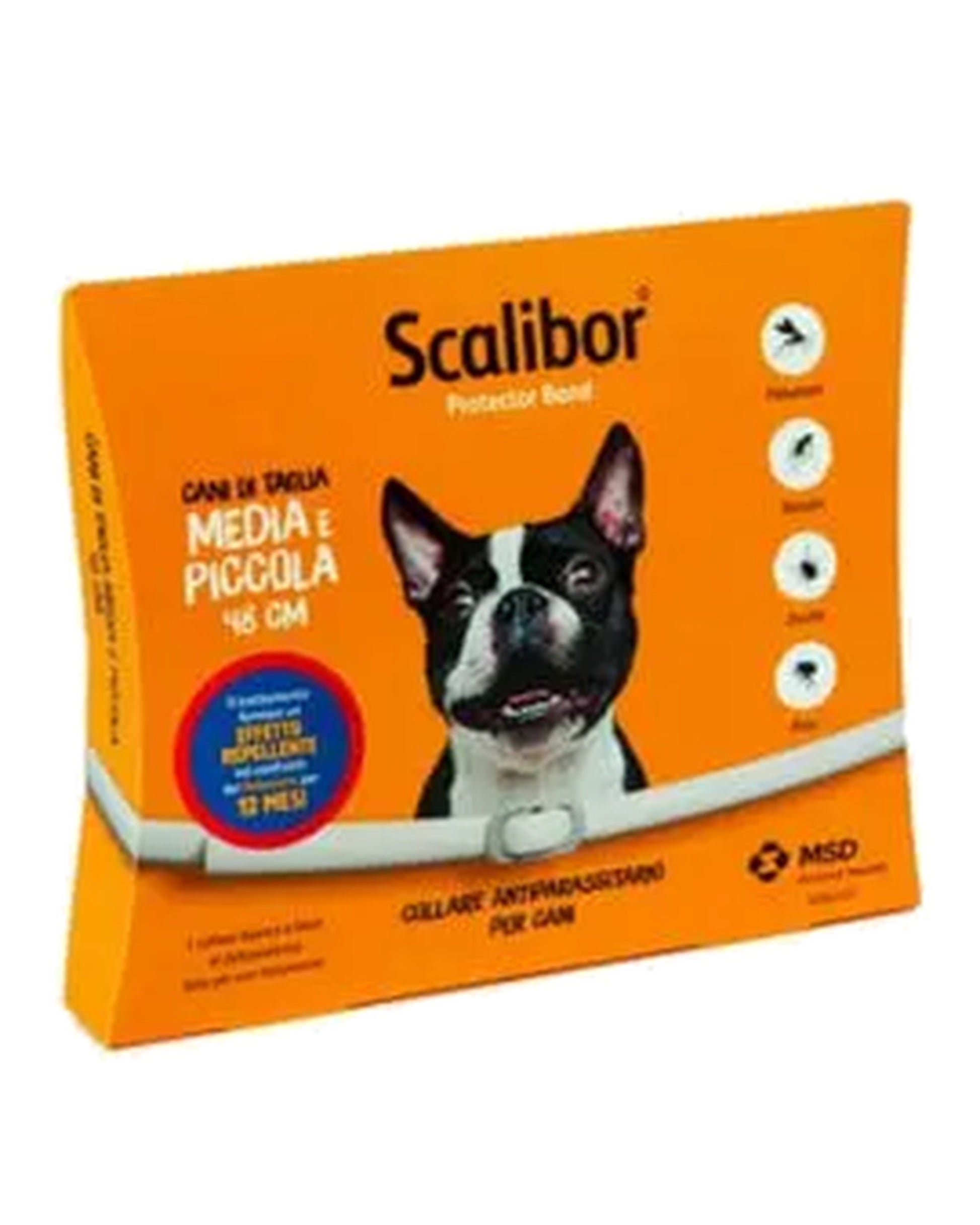 Scalibor Protector Band è un collare antiparassitario a lunga durata, studiato per proteggere i cani di piccola e media taglia da una vasta gamma di parassiti esterni. Contiene Deltametrina, un principio attivo con potente azione insetticida e repellente contro pulci, zecche, zanzare e pappataci, contribuendo anche a ridurre il rischio di trasmissione della leishmaniosi.